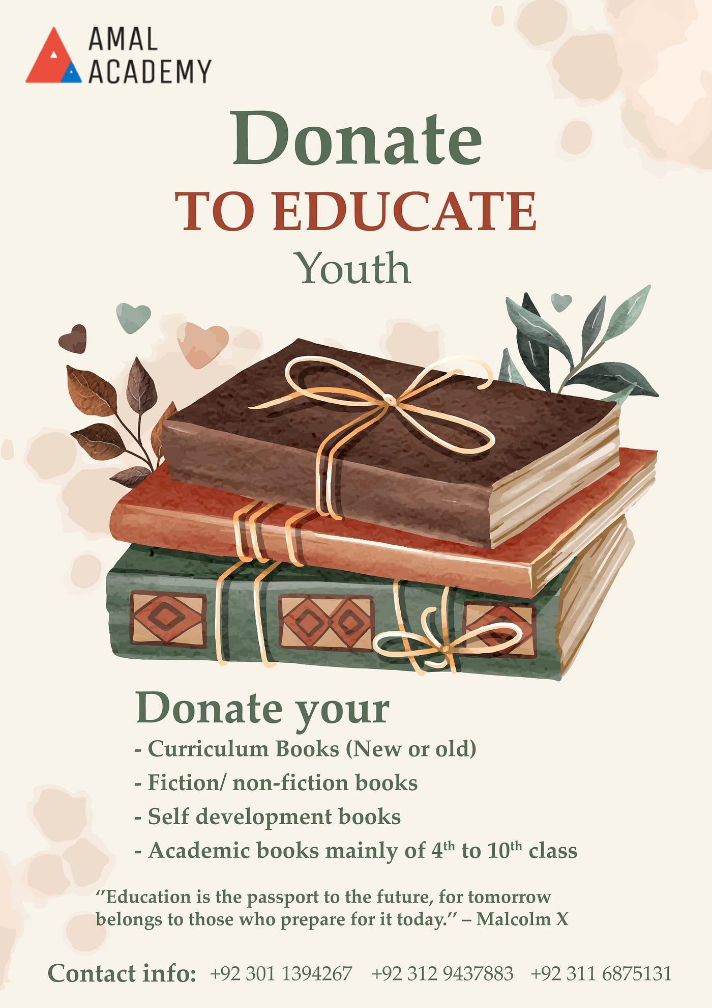 Encouraging individuals to donate educational materials.
